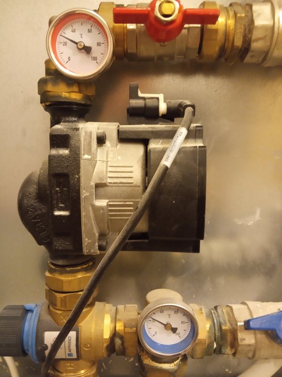 Czy temperatura na powrocie z podłogówki powinna być identyczna jak na wejściu tak jak mam? Czy może powinienem ograniczyć pracę pompy albo przepływy ?