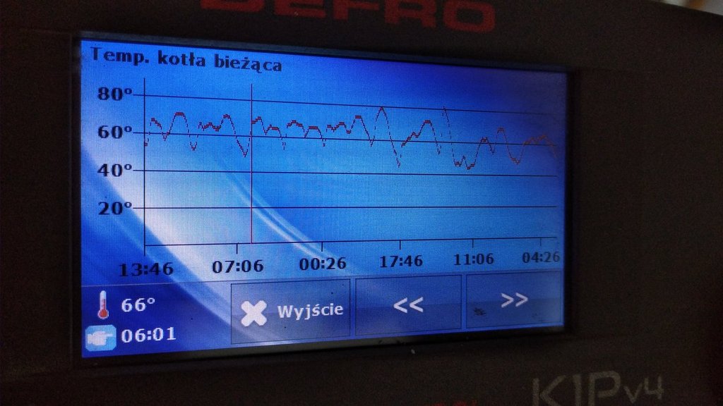 Witam.. Mam przewymiarowany kocioł. 180m powierzchni grzewczej. Jest to sigma z 2017 roku 24kw. Ustawienia aktualnie na 15kw. Bojler 200l, zawór czterodrozny, aktualnie pid. Wyłączona pogodynka, wyłączony regulator w domu, histereza cwu na 2 Ustawienia kotła to 65stopni, zawór na 38, korekta na -5 Praca min 1s, maks 2s Przerwa podajnika 24, max 45 Wentylator 22, maks 36 Obroty 80, maks 250 Nie podoba mi się to że temp tak mocno spada. Czy to dobrze że tak długo dochodzi do zadanej i szybko spada ? Spalanie to cały Zbiornik na 7dni. Z instrukcji wyniki że to 165 kg ale wydaje mi się że wejdzie do niego 180kg. Proszę o porady. Czy można coś zmienić żeby ten wykres jakoś wyrównać? Czy jeśli mam go na 15kw to spali mniej niż na 24kw?