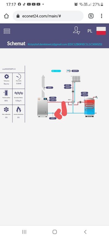 W uproszczeniu. Problem że nie ma sterowania pompą kotłową co zrobić żeby się uruchamiała razem z pompą mieszacza jak zacznie pompować wodę na grzejniki? Czy jak w sterowniku pod pompę mieszacza podepnę pompę kotłową to będą mogły działać jednocześnie? @sambor myślałem że jak dołożę pompę kotłową to będzie się załączała jak czujnik temperatury powrotu będzie poniżej 50°C ale widzę że się myliłem i teraz nie wiem jak rozwiązać problem. Jeszcze dało by radę jak by pompa kotłową załączała się równocześnie z pompą mieszacza tylko nie wiem czy jak wepnę dwie pompy w jedno gniazdo w sterowniku od pompy mieszacza to przy załączeniu pompy będą chodziły obie? -