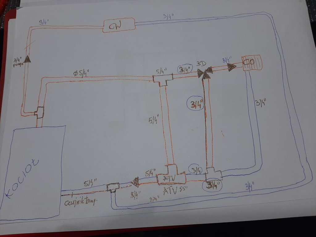 2. @Kordjano tak jak teraz czy zawór ATV też przesunąć w miejsce pomarańczowego trójnika na dole powrotu przed pompą?