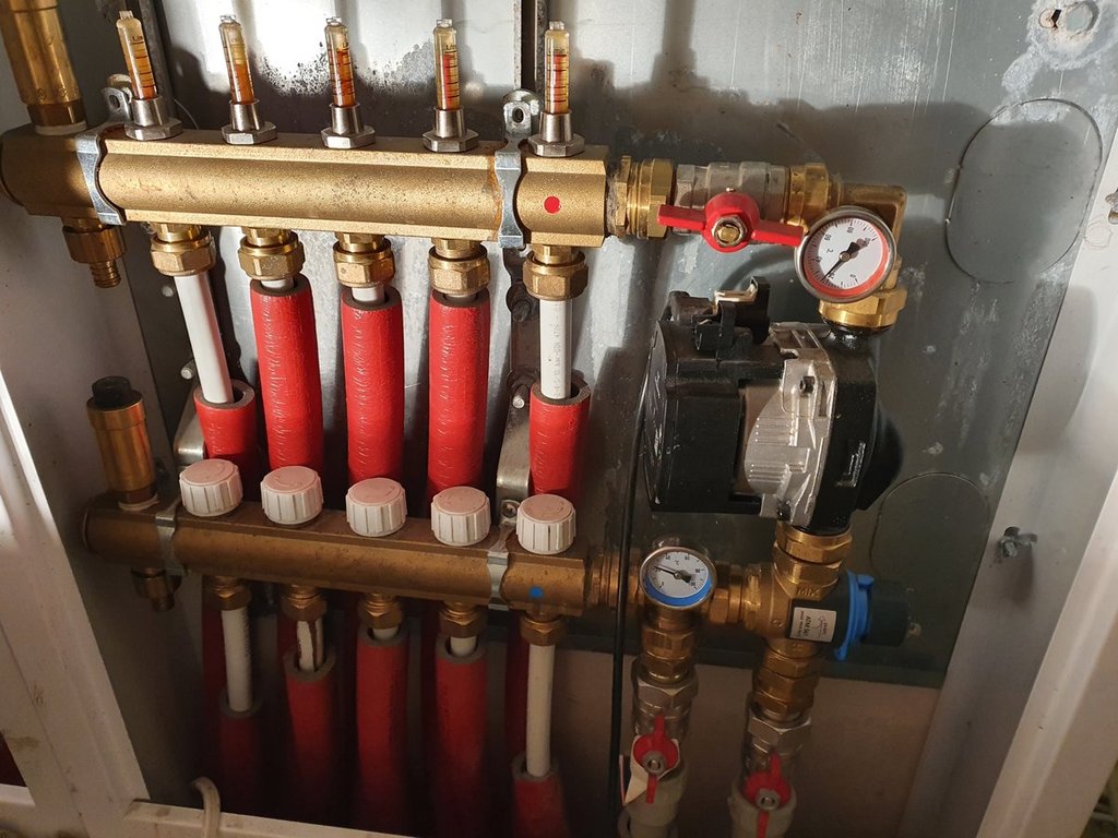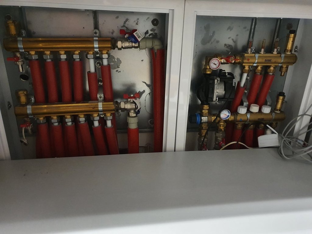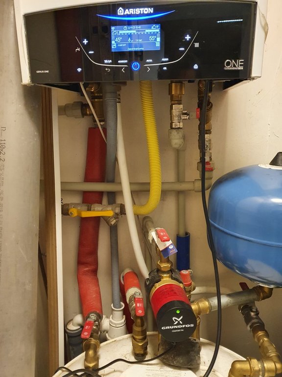 1. Witam, chciałbym prosić was o pomoc w następującym zagadnieniu, niestety prośba o wykonanie przez Hydraulików kończy się brakiem czasu albo nie odbieraniem telefonów. Mój problem polega na tym że jak zostanie uzyskana zadana temperatura na parterze (ogrzewanie podłogowe) to na górze oczywiście grzejniki oraz ogrzewanie podłogowe przestają grzać . Dodatkowo sterowanie ręczne zaworem mieszającym na parterze (ogrzewanie podłogowe) jest bardzo uciążliwe. Jeden z hydraulików (który niestety juz sie nie odzywa ) zaproponował dodanie 1 Termostatu (Euroster lub Salus) na piętrze oraz przekaźniki w kotłowni które by sterowały pompami na ogrzewaniu podłogowym. Dodatkowy sterownik/termostat na piętrze byłby ulokowany na korytarzu. Bardzo bym was prosił o pomoc w doborze odpowiedniego rozwiązania. Sprawa wygląda następująco, zakupiłem dom 2 lata temu z instalacja Ariston Genius one: Kotłownia:(Załącznik) Parter : Sterownik Ariston Cube S Ogrzewanie podłogowe ok 60 m2 1 rozdzielnia z 4 strefami z zaworem mieszającym manualnym oraz pompą()załącznik Doprowadzony kabel skrętka Piętro: Brak sterownika (możliwość podłączenia na korytarzu, wyprowadzona skrętka) Ogrzewanie podłogowe 1 pomieszczenie (łazienka) - Rozdzielnia z 3 strefami (wykorzystywane tylko 2 w łazience, pozostała 1 wyłączona (pralnia)) W rozdzielni pompa oraz doprowadzony kabel skrętka 5 pomieszczeń z grzejnikami termostaty na grzejnikach Rozdzielnia załącznik Kotłownia Rodzielnia Parter (podlogówka) Piętro Grzejniki, podlogóka