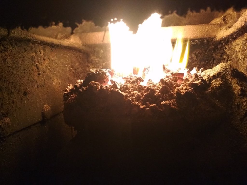 Nad paleniskiem ok. 25-30cm są płyty szamotowe. Przed wyjściem do pracy zmieniłem czas podawania na 4s i wydaje mi się, że spalanie się trochę poprawiło. Spalanie się poprawiło ale zaczęła lać mi się czarna woda z komina pod kocioł. W załączniku dodaję zdjęcia jak to teraz wygląda. -