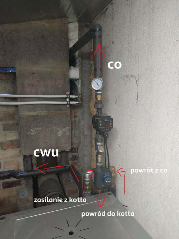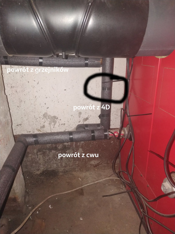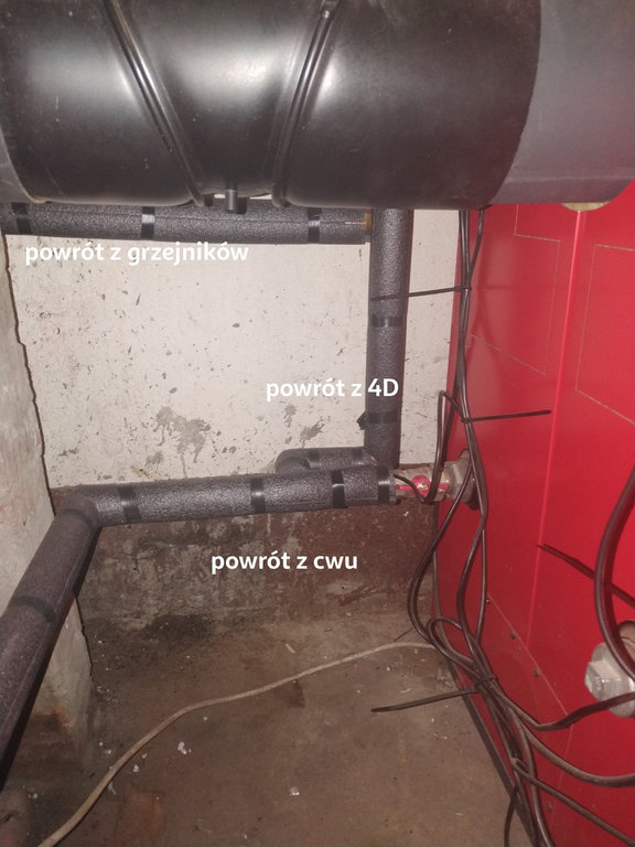 Temperatura powrotu zwiększa się jedynie podczas pracy pompy CWU, wtedy rośnie do 60 stopni, ale jak dogrzeje wodę użytkową to powrót spada na 33 stopnie.