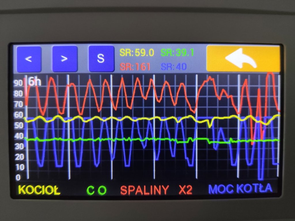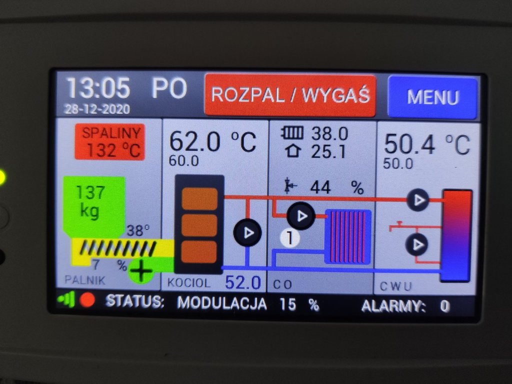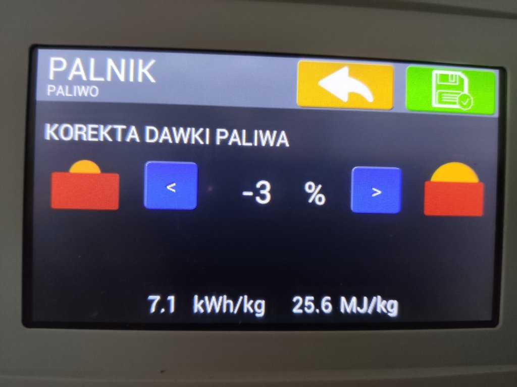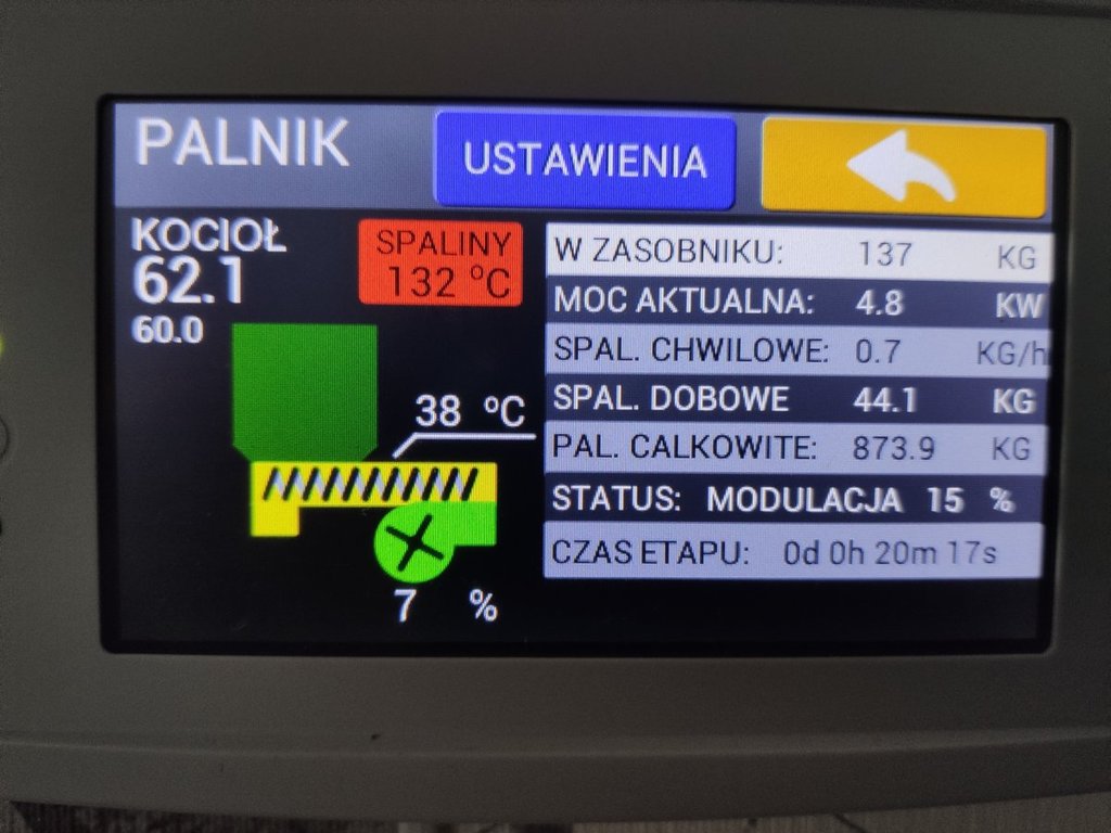 jeśli chodzi o to, to nie korzystam z regulatora pokojowego tylko ze stałej temp ustawionej na grzejniki ( w tym momencie jest to 38*C) z czujnika nie korzystam, bo teraz sięga tylko do małego pomieszczenia w którym jest najcieplej; w reszcie domu jest od 21 do 23 stopni. Planuję do tego wrócić, ale muszę dokupić dłuższy przewód do czujnika, tak abym mógł go zainstalować w dobrym miejscu. @Oldek obniżyłem ten mój ''deflektor'' nie styka się już z rusztem -