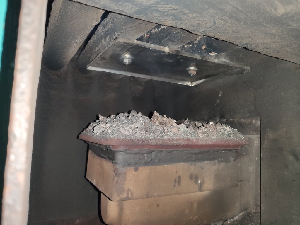 Cześć, po głębszej analizie i przespaniu się z tematem zdjąłem cegły z paleniska, temperatura podajnika spadła czyli tu jest ok. zastanawiam się nad zmianą tego deflektora na okrągły, ale jedyne co mam dostępne w domu to spód od tortownicy:) średnica 24 cm wrzucam parę zdjęć jak to wygląda: -