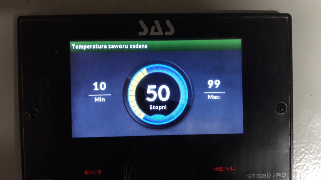 kontrola temperatury 0:30, Czas otwarcia: 1:20, skok jednostkowy 5%, minimalne otwarcie 5%.
