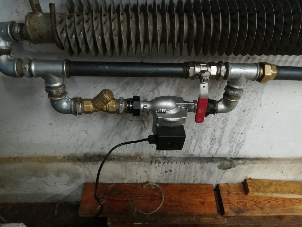 Witam, mam problem z jednym kaloryferem. Układ to stara grawitacja, ale działająca bez zastrzeżeń jak do tej pory (zdjęcie poniżej). Ostatnio dołożyłem jeden kaloryfer do garażu, wpinając się w główne rurki (1cal) które idą pod sufitem w piwnicy, sam kaloryfer jest powyżej pieca ponieważ kotłownia jest ponad 1 metr niżej niż reszta piwnic, ale rurki które zasilają go (również 1cal) jak on sam sa niżej niż główne rurki. Po uruchomieniu na nowo układu, grawitacja działa tylko w domu natomiast nowy kaloryfer zimny, na tą chwilę zrobiłem dosc mocna prowizorkę i wstawiłem pompke koło tego kaloryfera żeby pompowało wodę i nie zamarła mi w rurkach. O dziwo cały układ działa w miarę ok (dwa grzejniki słabiej grzeją). Jednak chciałbym to zrobić tak jak powinno być, czyli pompka wraz ze sterownikiem przy piecu (na powrocie). I teraz moje pytanie czy wtedy wszystko będzie dobrze działać? Na kaloryferach w domu mam stare zawory i trochę ciężko aby nimi w razie czego regulować przepływ wody. Ogólnie chodzi mi o to czy ten nowy kaloryfer zacznie normalnie grzać? Ewentualnie jakie przeróbki trzeba wykonać, Dzięki.