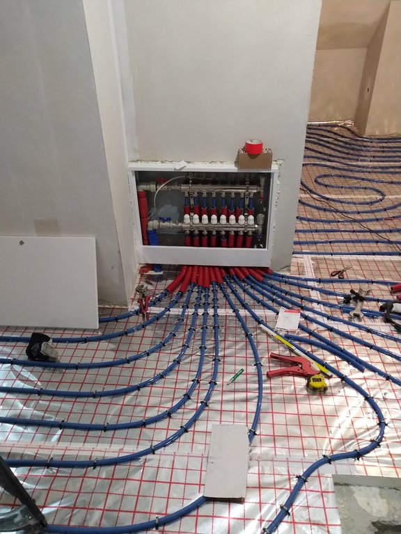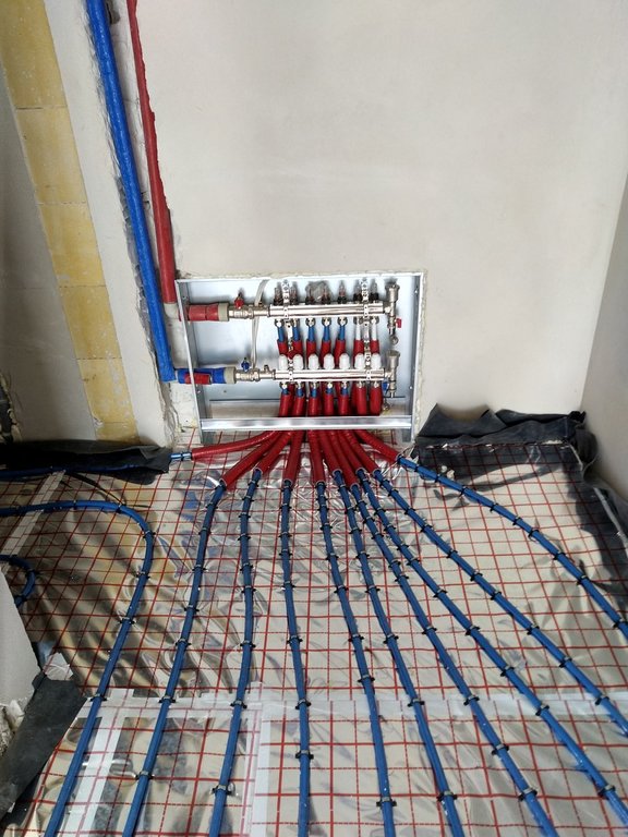 Posiadam kocioł Junkers Cerapur Smart ZSB 24-5C z sterownikiem CW400 z czujnikiem temperatury na zewnątrz. Kocioł instalował autoryzowany serwis. Podłogówka w całym domu (125 m2) bez grzejników. Instalację budowałem samodzielnie bez projektu. Kocioł, dwa rozdzielacze parter (68-48-45-47-34) i poddasze (55-63-77-32-71-62-56-38). Rozdzielacze połączone z kotłem przez trójnik rurą PP32, łącznie ok. 700 mb położonej rurki 16x2. Wszystko napędza pompa w kotle - serwis Junkersa stwierdził, że powinna wystarczyć. Ogólnie podłogówka działa, krzywa grzewcza wstępnie ustawiona, jest ciepło. Problem pojawia się przy wskazaniach przepływu i próbie wyregulowania temperatur konkretnych pomieszczeń, a mianowicie przy całkowitym rozkręceniu rotametrów maksymalne co jestem w stanie uzyskać to 1 l/min na wszystkich pętlach. Tak więc zwracam się z prośbą o radę co może być powodem takiego stanu rzeczy. Za słaba pompa, za mały przekrój rur kocioł - rozdzielacze czy może po prostu zapowietrzenie. Załączam zdjęcia rozdzielaczy.
