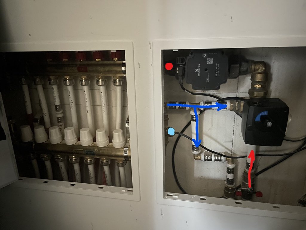 1. Na oko mam wątpliwość co do tego jak zrobiony jest powrót, że najpierw jest odejście do powrotu dla całej instalacji, a dopiero z nim, zawór mieszający? Może to bez znaczenia, ale mam wrażenie, że gdy się zamyka zawór to rura powrotu się grzeje.