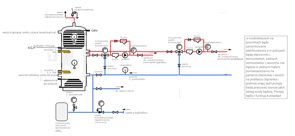 W lato w zasadzie nic nie będzie działać oprócz grzałki z termostatem. Hydrofor wiadomo będzie działał cały rok.