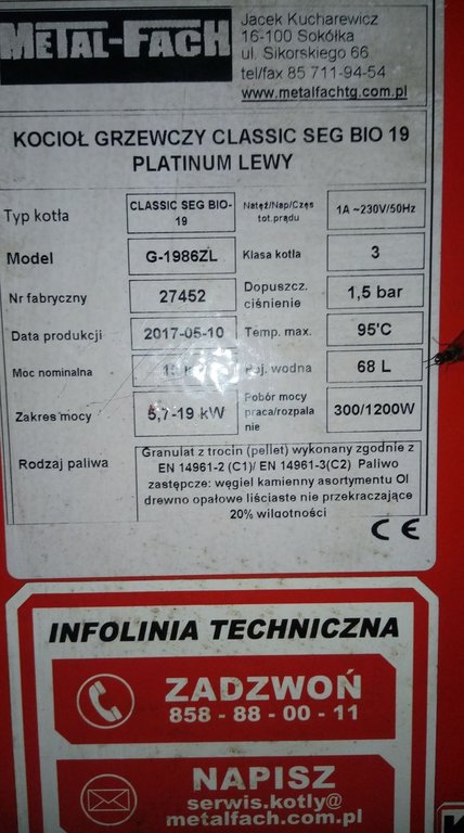 Dzięki za zainteresowanie jak zważę to zaraz napiszę. Mój kocioł nie ma rury spiro,pellet leci z zasobnika do podajnika ślimakowego i nim bezpośrednio jest podawany do palnika. Jutro wyłączę zważę i napiszę,