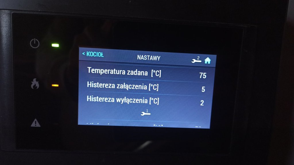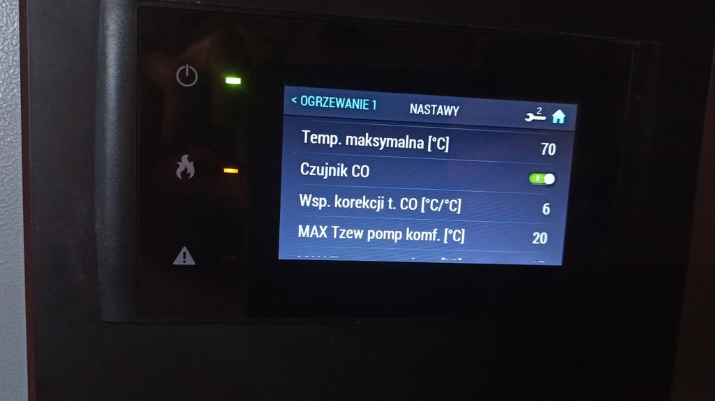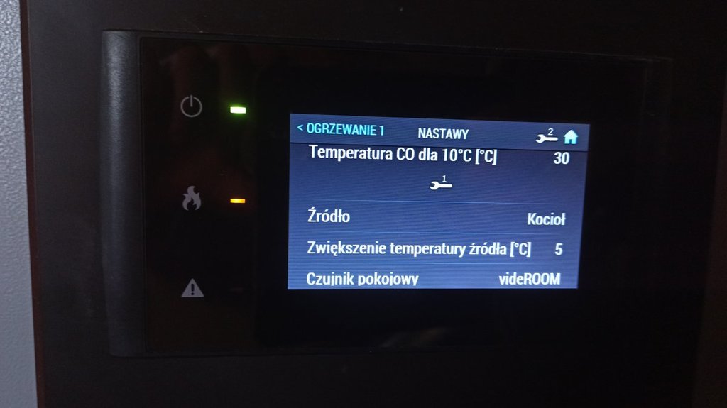 Załączam zdjęcia chyba wszystkich ustawień jakie są, i proszę o podpowiedź czy wszystko jest ok. Czy w opcjach przy czujniku pokojowym, czujnik co ma być aktywny czy nie? Do czasu podłączenia czujnika pokojowego kocioł brał informacje o temperaturze wody powracającej z kaloryferów, tak sądzę. Zauważyłem też że pomimo przestawienia na automatyczne włączanie pieca z uwzględnieniem godzin i temperatury w pokoju to nie zawsze się piec chce odpalić, przykład temperatura w pokoju spadła do 18,5 stopnia, na czujniku ekonomiczna ustawiona 20,5, komfortowa 21,5, histereza 1 stopień, a pięć nie chce ruszyć.