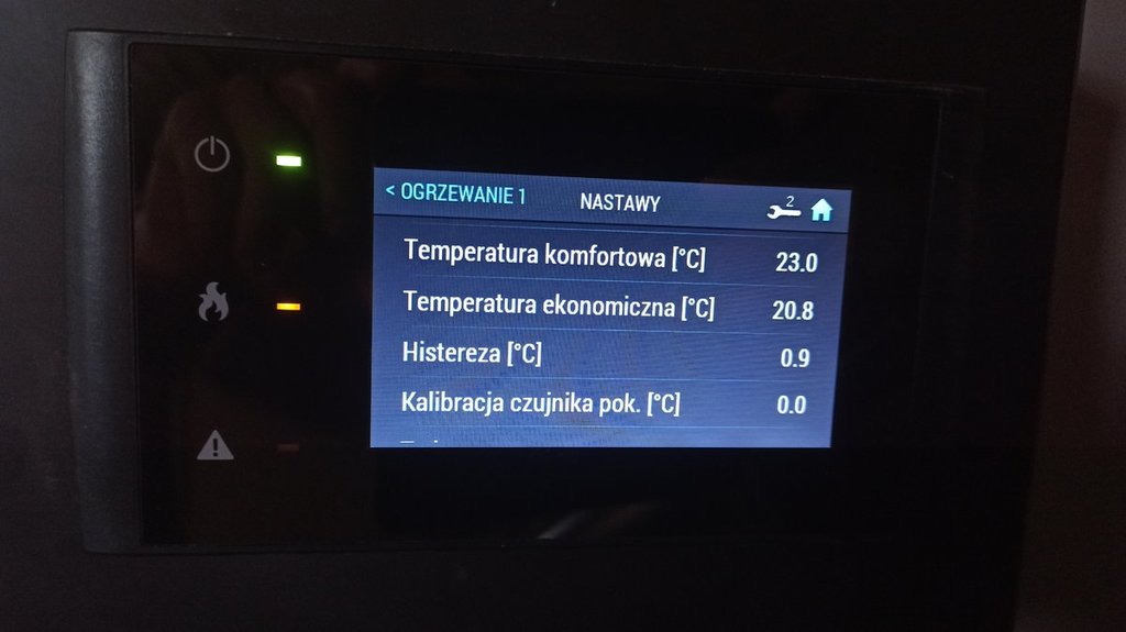 Ustawiłem temperaturę komfortową i ekonomiczną według swojego uznania, w komputerze sterującym uwzględniłem czujnik pokojowy, histereze temperatur. To tak słowem wstępu, teraz pytania.