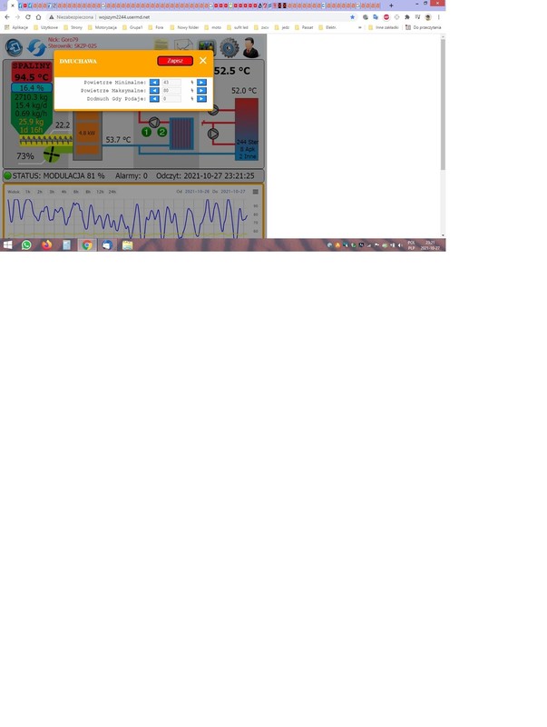 Kolego wojszym2244 przypadkiem znalazłem chyba mały błąd . Przy próbie zwiększenia 'powietrze minimalne' w dmuchawie przeskakuje na wartość 30 i nie da się zwiększyć , obniżanie działa ok . Problem jest zarówna w aplikacji jak i na stronie . -