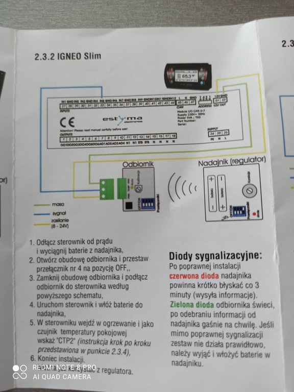 Hej. Podłączyłem czujnik bezprzewodowy ctp-02r do sterownika Estyma Igneo Slim wedle instrukcji/schematu i przy wyborze w ustawieniach czujnik pokojowy ctp2 wywala taki błąd- kod 46, rozwarcie in2 moduł 0. Ktoś wie co jest nie tak ?