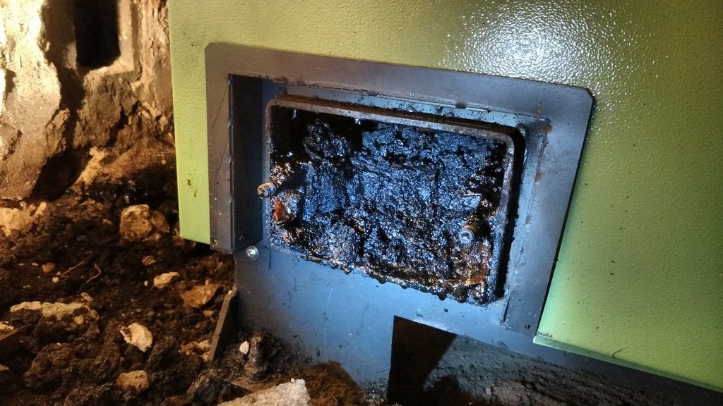 ewidentna smoła w kominie przyczyn jest wiele ale głównie to wędzenie w niskich temperaturach poniżej 55C, długi czopuch, nie ocieplony komina na strychu. Widzę to codziennie parę przykładów:) Temat do zrobienia, poniżej pozwolę sobie dodać parę podobnych przypadków .