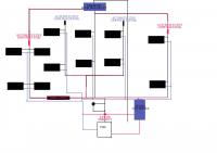 1. W piwnicach mam rury na wyjściu o średnicy ok. 10cm, dodatkowo w jednym miejscu rura jest jeszcze grubsza i do tego żebrowana. Z piwnicy na codzień nie korzystam. Rury te zaznaczyłem na czerwowno. Zamiast nich chciałem wstawić miedziane o mniejszej średnicy. Liczę, że w związku z tym kaloryfery będą szybciej ciepłe, co by się przydało w okresach przejściowego palenia.