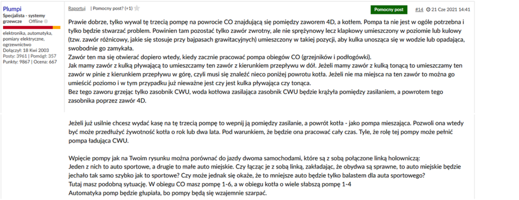 Mam jeszcze jedno pytanko odnośnie pompy na powrocie, gdyż jakiś tam specu z elektrody skrytykował mi schemat. Nie jestem hydraulikiem , więc proszę pomóżcie przetłumaczyć to na prostszy język, albo zaopiniujcie czy gościu ma racje czy bredzi. cytuje fragment: -