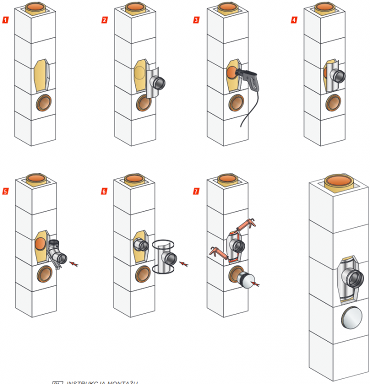 Bardzo dziękuję forumowiczowi Pastan za pokazanie jak ma wyglądać adapter do komina. Spróbuję takie coś przygotować. Czy te kolanko z rysunku numer 5 jest potrzebne ? Co do opasek na rysunku 6, to nie wiem czy uda się je zawinąć naokoło kamionki mając otwór tylko z przodu. -