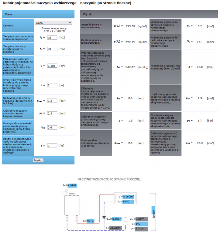 Znalazłem na sieci konkretny kalkulator do obliczania pojemności naczynia przeponowego, podaje link: http://kalkulatorprojektanta.pl/kalkulatory/k1-tlocznej Nie jestem pewien, czy dobrze wszystko wpisałem, ale wyliczyło mi potrzebne naczynie na 30 litrów. W sklepach sprzedają naczynia 35L, więc nie ma co szukać więcej. -