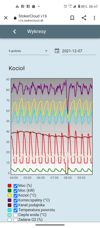Witam Panowie, wiecie może co może być przyczyną takiego bujania kotłem? Od północy zaczął dziwnie pracować, wcześniej wszystko działało dobrze. https://v16.stokercloud.dk/#Dumadar