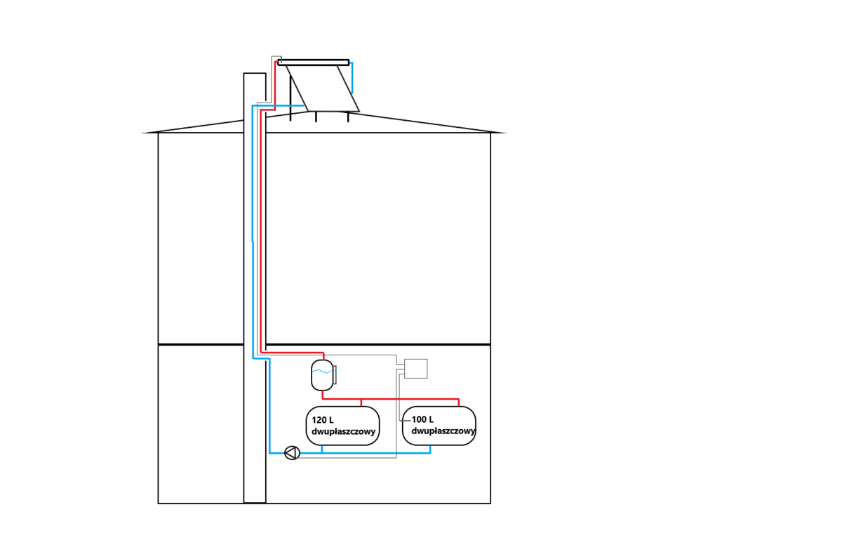 Noszę się z zamiarem popełnienia instalacji solarnej w systemie drain-back. Rozrysowałem sobie schemat instalacyjny. Proszę o opinię czy będzie to działać? Zamierzam wykorzystać pompę od CWU w okresie letnim, rurociągi puścić nieczynnym kanałem kominowym na dach (najkrótsza droga). Skłaniam się nad solarami typu Heat-Pipe - ile rur mi potrzeba - w domu 5 os. Czy rurociąg mogę puścić PEX w kauczuku, czy muszę kupować rury nierdzewne do solarów. Jaki sterownik kupić by obsługiwał dodatkowo grzałkę w jednym z wymienników w razie słabego słońca? -