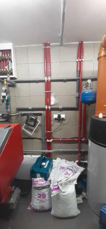 Na górze około 75m2 użytkowej pow 3 pokoje (grzejniki) łazienka (podlogowka i grzejnik scienny ) pralnia (gr,ejnik scienny)