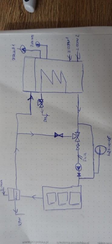 Nie wiem czy ktoś to zrozumie,bo ja nie ogarniam hydrauliki, próbuję to rozgryźć, ale załączam odręczny szkic części instalacji. Być może cos pokonałem, będę uzupełniał jeśli potrzeba. Ewentualnie fotkami wyprostuje