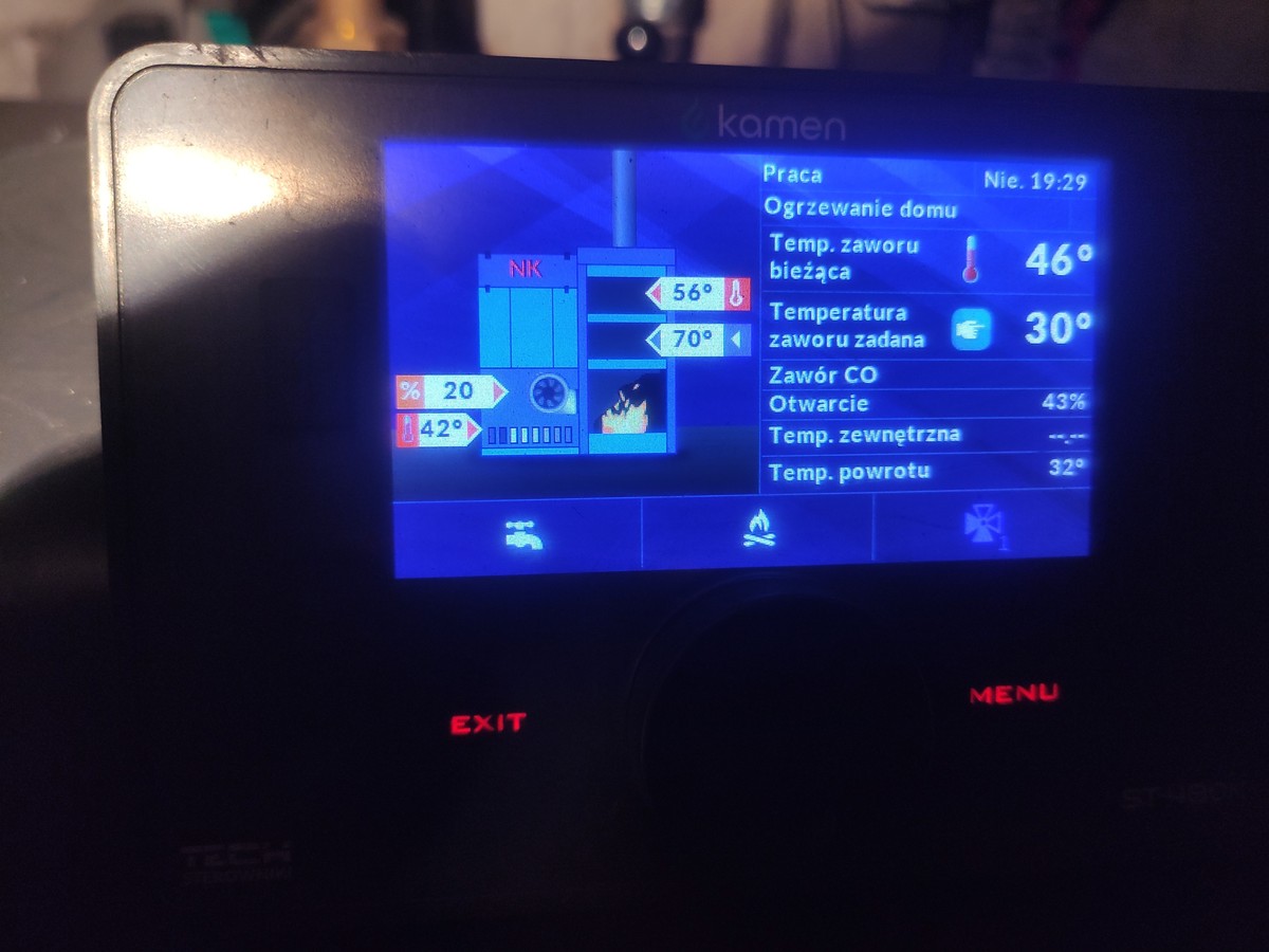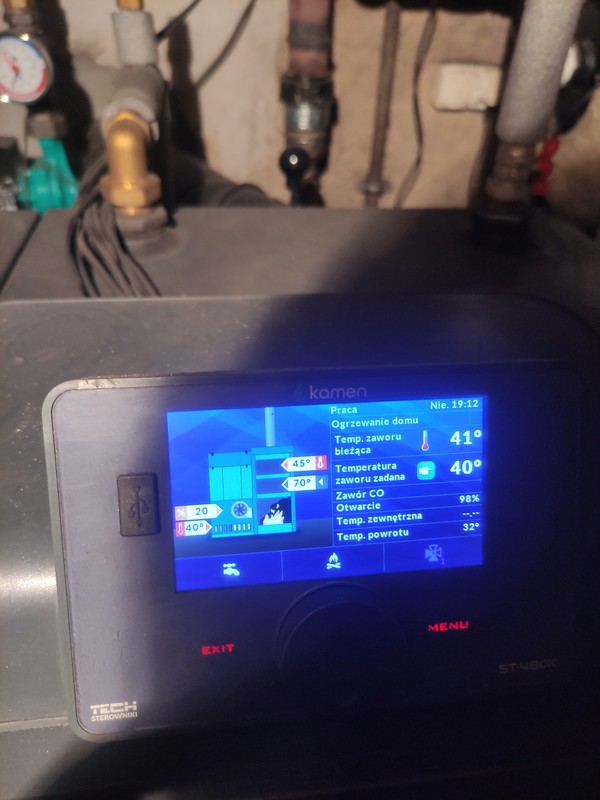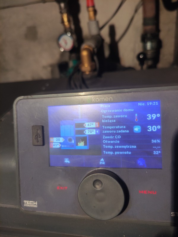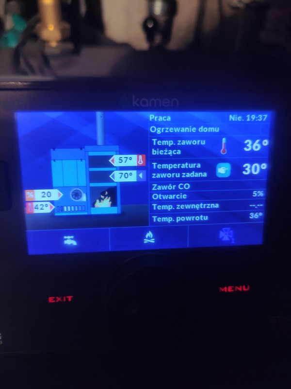 Podkręciłem węglem, dmucha cały czas, temperatura zaczęła rosnąć szybciej bez bojlera, mogę go wpiąć ogólnie do prądu jeżeli to ma pomóc kotlowi na ten moment, mam zamontowana fotowoltaike więc on jest wliczony w prąd Temperatura rośnie na piecu ale zawór tez mimo zmniejszenia zadanej temperatury -