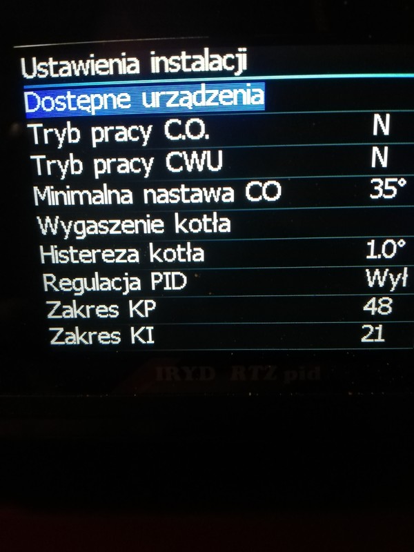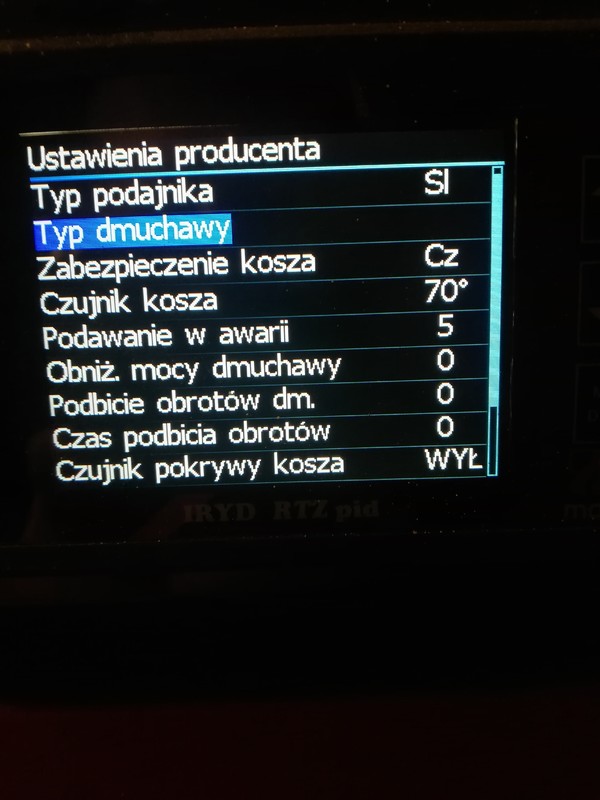 1. Witam Na początku chciałem się przywitać. Od niedawna posiadam piec Moc-eko plus 20KW z podajnikiem ślimakowym i palnikiem Batory. Sterownik Iryd RTZ pid fuzzy logic ( kolorowy wyświetlacz). Dodatkowo pompa do cyrkulacji ciepłej wody użytkowej LPS 25/4-180 Elektroniczna pompa obiegowa EPO 25-6-180 Dmuchawa DM 80 Zawór mieszający Afriso 4d Póki co palę bez PID ale czytałem że lepsze spalanie można uzyskać jednak z pid-em. Moje ustawienia bez Pid to: Ustawienia dla pracy: Czas między podawaniem 0:45 wydajność dmuchawy 25 Czas podawania podajnika 10s Ustawienia dla podtrzymania: Czas przedmuchu: wył Czas przerwy 10min Krotność podawania 1 Temperatura CWU 50 stopni Temperatura kotła 60 stopni. Przy tych ustawieniach kocioł raz nie dopala po zmianie nadmuchu są spieki albo krater wewnątrz palnika. Dużo sadzy. Ustawiałem go zgodnie z filmikami na YouTubie ale niewiele to pomogło. Bardzo proszę o pomoc poniżej wysyłam zdjęcia z resztą ustawień dziękuję pozdrawiam