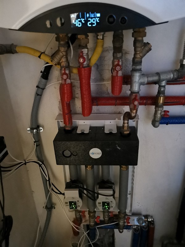 O samej instalacji, w kotłowni wisi tytulowy kocioł wraz z systemem mieszającym z dwoma pompami wilo. Foto, pytanie w jakim trybie powinny chodzić pompy?