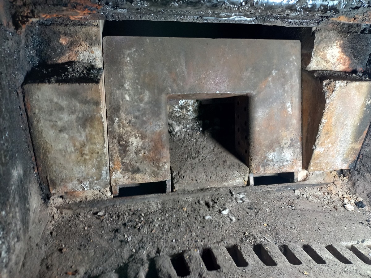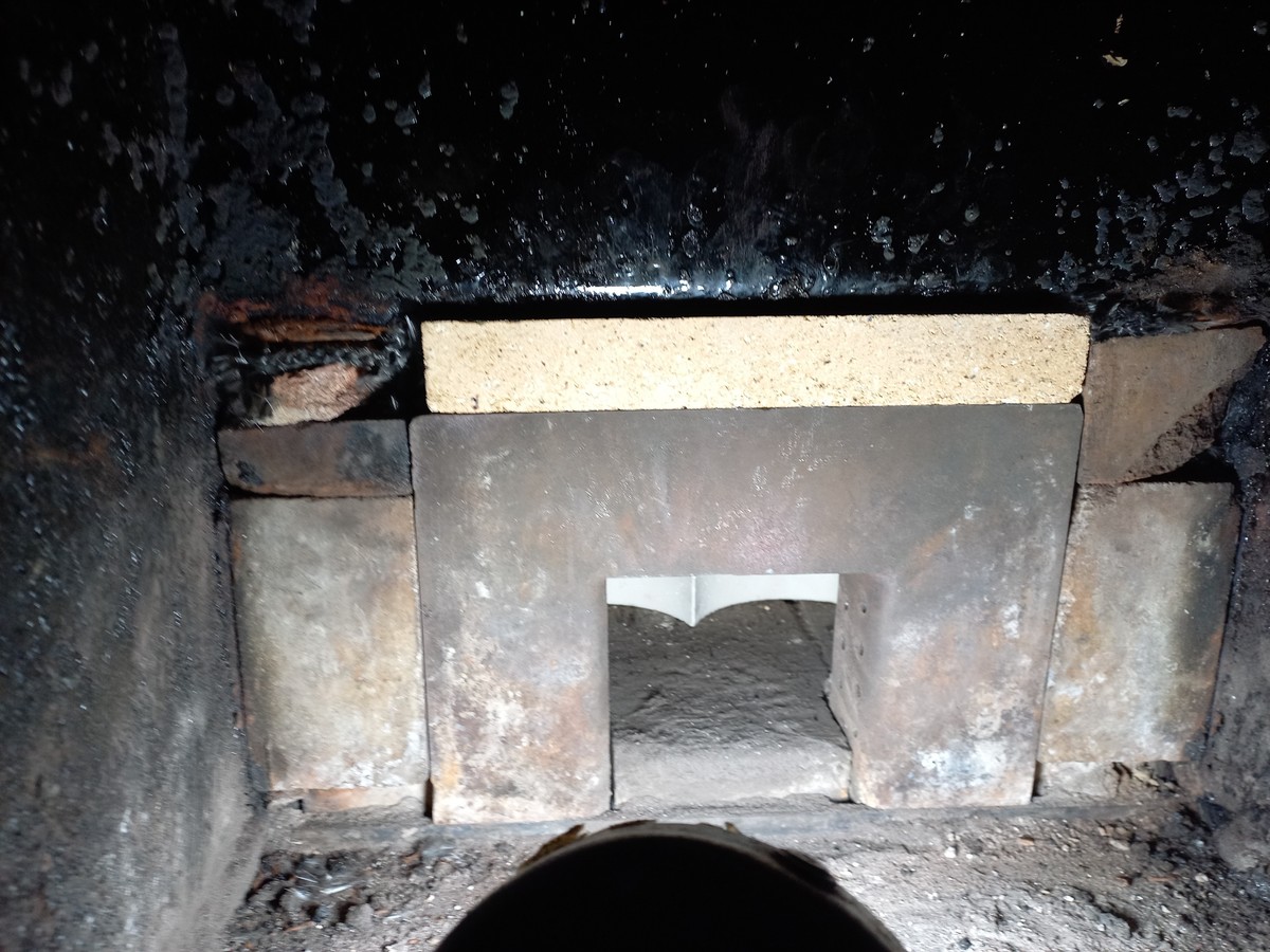 Musiałem na nowo zrobić ten płaskownik od palnika wirowego z kwasówki ze wzmocnieniem bo ten wcześniejszy pod wpływem temperatury wygiął się na półksiężyc. Oto fotki nowego no i standardowo nowy klin z szamotu nad palnik bo ze starego zostały kawałki.