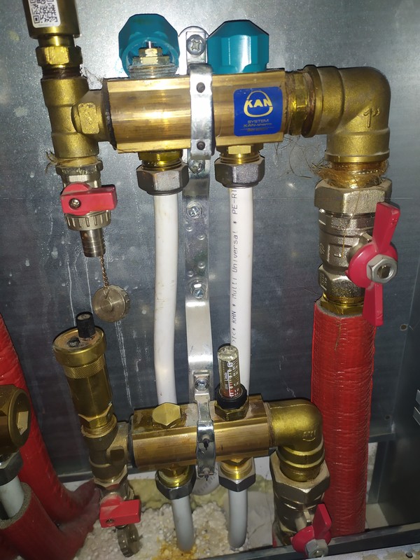 Wpiałem się w powrót podłogówki z dolnego rozdzielacza przed zawór 3D i śmiga elegancko. Rotametry mogę wyregulować wszystkie spokojnie - i to do ok. 2l/min (ustawiłem w większości po 1.5l). Co prawda przy jednym lucie miedzi troszkę zaczęło mi kapać.... Próbowałem 3x poprawiać lut, ale bez większego rezultatu więc kupiłem specjalny klej uszczelniający do miedzy i jest ok. Teraz tylko trzeba zrobić ochronę kotła, a więc wpiąć się w zawór 4D trójnikiem 1 cal u góry i zrobić rozejście na grzejniki i na podłogówkę. Mam tylko obawy, czy rozejście 1 cal starczy zarówno na grzejniki jak i na podłogowe? W sumie mam pewnie ok 80m2 podłogówki (7 sekcji) + 10 grzejników (2 drabinkowe do łazienek, + 8 stalowych PURMO średnio długości ok 1m). pozdrawiam, -