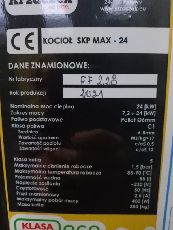 Sprawdzę później tabliczkę na palniku. Myślisz, ze serwis pluma poda mi taki kod ? Ewentualnie jest sens wogóle to sprawdzać. Może być inna moc niż pisze na tabliczce ? Tak wiem, kilka osób już mi to nadmieniało. Jednak te 5 worków trochę boli. Gdy co 2 dni napełniam na full zasobnik pelletu. -