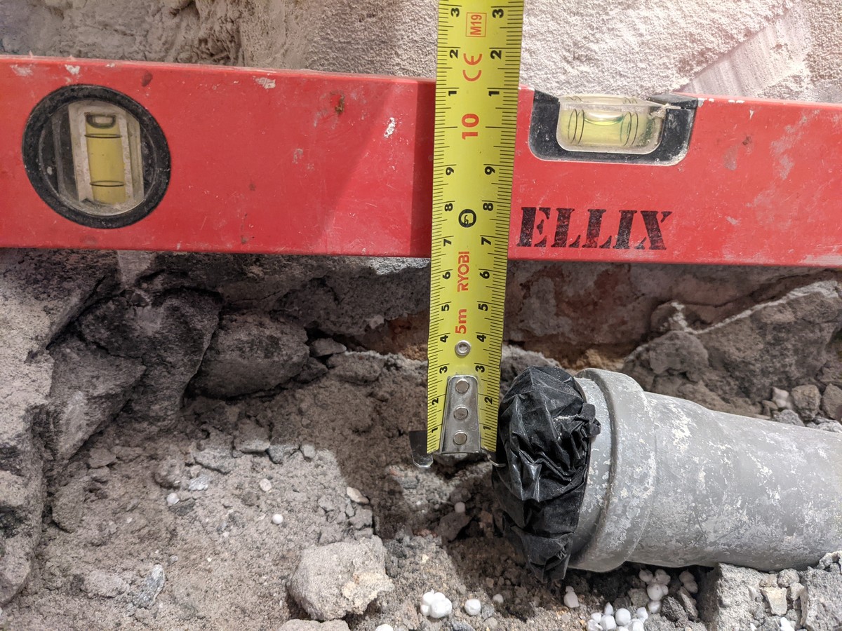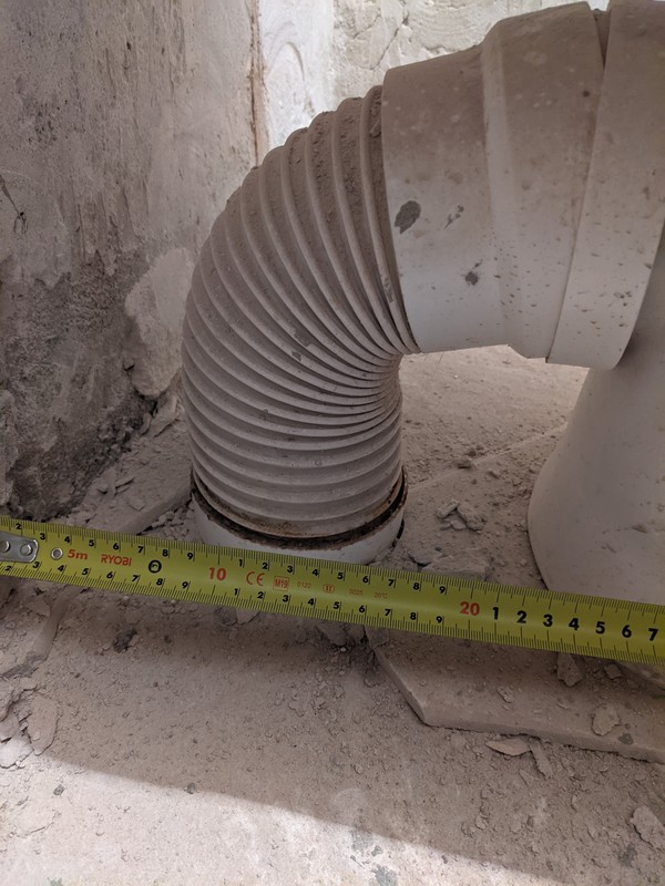 Nie dam rady podłączyć brodzika z odpływem po prawej stronie o rozmiarze 90x90cm bo otwór syfonu przypadał by gdzieś na równo końca rury odpływowej, kucie tej rury odpada bo biegnie ona w dół przez całą grubość stropu i jest podłączona pod stropem w piwnicy. Gdzieś tu by wypadł, może jakimś kolanem 90st bym podłączył choć wątpię: Zamówiłem już brodzik Sanplastu z odpływem w rogu, jak przyjdzie dam znać. -
