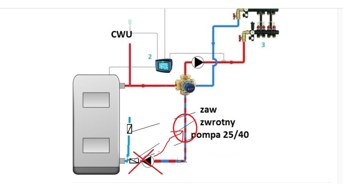 1. Okej dziękuje przeróbka już w trakcie. chciałbym jeszcze dopytać o zawory zwrotne, dlaczego w tym układzie zamontowany jest zawór zwrotny za pompą na powrocie ?