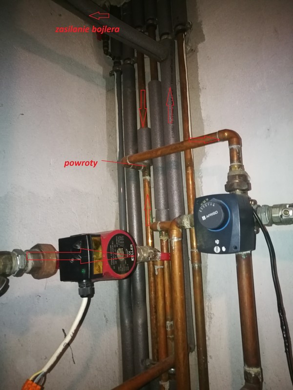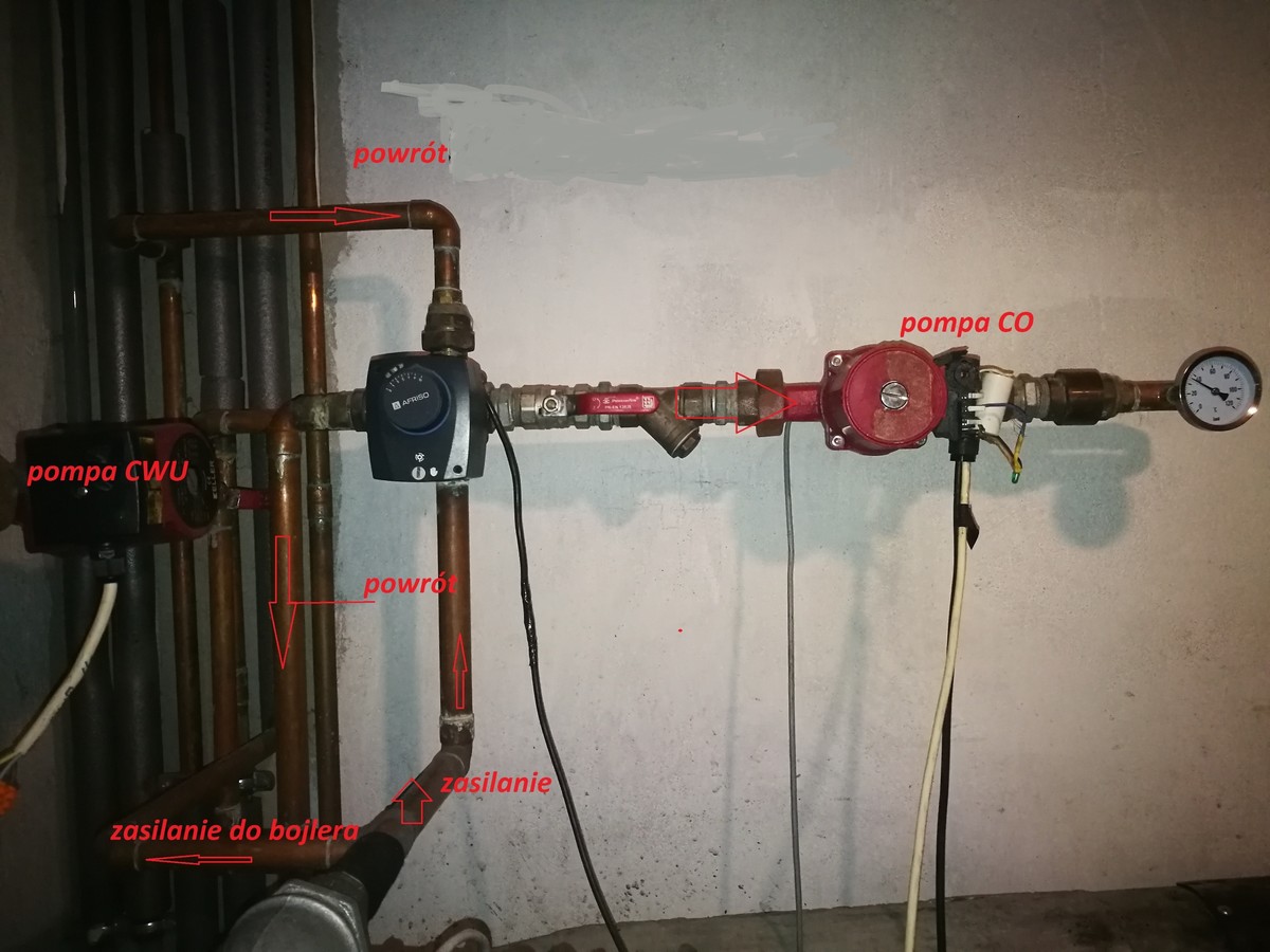 7. Jestem po przeróbkach.Pomoa kotłowa dołożona zajęło mi to cały dzień,ale wkońcu nie siedzę w tym na codzień. Ogólnie jestem zadowolony z efektu. Piec się uspokoił spalanie groszku zmalało.tempertura jest stabilna piec się już nieodstawia pracuje w ciągu i niema już efektu spadku temperatury o 10-15 stopni. Forumowicz 1mps dobrze mi to wytłumaczył i przynajmniem byłem zmuszony poznać swoją instalacje co. Nie przerobiłem tylko zasilania Cwu ale to zostawiam na ciepłe dni jak wygasze piec na chwilę obecną uważam że bojler 80L jest chyba przymały na 4 osobową rodzinę. Ogólnie zapowietrza się się układa na tej pompie przypuszczam że to wtedy jak pompa cwu ruszą brak tego odpowietrznika na samej górze Zdjęcia po przeróbkach powrót ma normalną temperature i zawór 4d otwarty w połowie do tego co było i jest ciepło w domu. Zastanawiam się czy jak bym zrobił cyrkulację tylko na sam bojler to czy niemiał bym więcej gorącej wody. Bojler na górze ma wyjście do cyrkulacji a dalej podłączył bym do wyjścia ciepłej wody z niego. Taki mały obieg bym zrobil