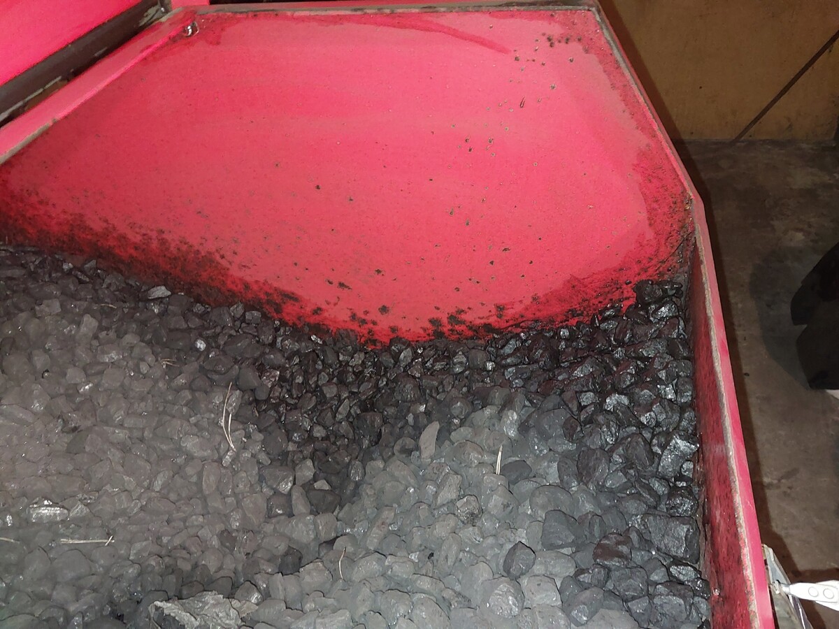 No i dziś powtórka z rozrywki, czyli znowu wmza wysoka temperatura podajnika 67st i wszystko w piwnicy zadymione. Nie mam już pomysłów co jest nie tak. Zauważyłem tylko ze wsypuje suchy węgiel, a potem w podajnika robi się mokry z jednej czyli prawej strony. Wtedy cala prawa strona podajnika jest mokra jak na zdjęciach. Najwięcej wilgoci pojawia się jak robi się dziura w węglu, gdy ślimak podaje węgiel z podajnika. -