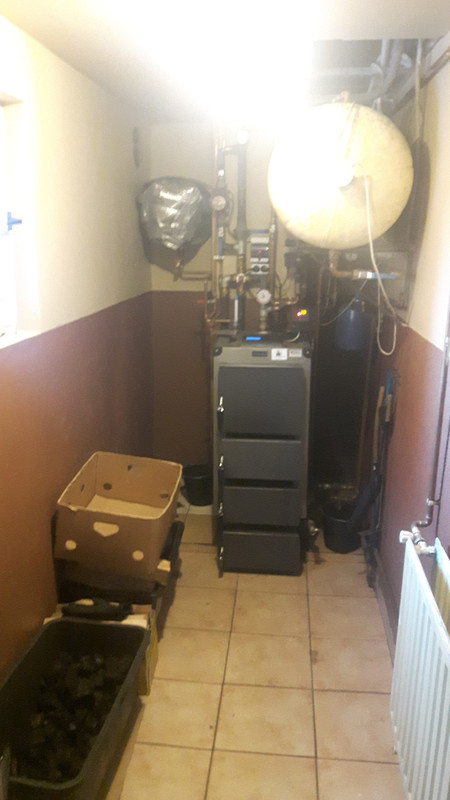 Witajcie. Ogólnie to tak potrzebuję wąskiego kotła do kotłowni która ma w szerokości z 1,34m a w długości tak do 2,5m od ściany komina do otworu wentylacji i nie wiem jaki kociołek wybrać jedno jest pewne jak najwęższy maks. pewnie do 60cm albo i mniej. Teraz mam zasypowca o szerokości 45cm i jest dosyć komfortowo jeśli chodzi o przestrzeń boczną. Szkoda też że mam czopuch na wysokości około 80cm, odpadają wszystkie kotły co mają czopuchy na 1,1-1,2m. Zastanawiam sie nad kotłospawem Slimko 12kw który ma 56cm szerokości i ma palnik kipi a Teklą draco compact FII 12kw z chyba lepszym palnikiem. Kipi ma sterownik plum a tekla ma estymę i co wybrać.... Czas mam dość ograniczony bo kotły najszybciej na maj/czerwiec będą i lepiej teraz złożyć zamówienie bo każdy miesiąc może odwlekać wymianę na późniejszy termin , mam jeszcze ofertę Heitz Kompakt 10kw z palnikiem kipi od lokalnego sprzedawcy. Zastanawiają mnie jeszcze kotły z palnikiem wrzutkowym co wyglądają jak lodówki: Ferroli, Biawar pellux, Kozlusan Lidia, Hetiztechnik One, Lazar Smartfire. Nie wiem co będzie lepsze. Myślałem jeszcze nad wąskim kotłem plus oddzielny zasobnik z podajnikiem umiejscowiony z przodu przy ścianie od lewej strony ale nie wiem czy nie będzie problemu z przechodzeniem do wyczystki która jest po lewej stronie zdjęcia przy kominie. Tak wygląda teraz moja kotłownia, oczywiście będzie od nowa zrobiona z bojlerem 80l a nie jak teraz 140l. No i wszystko z dotacji pójdzie, jak państwo chce niech płaci z 50% kosztów.. -