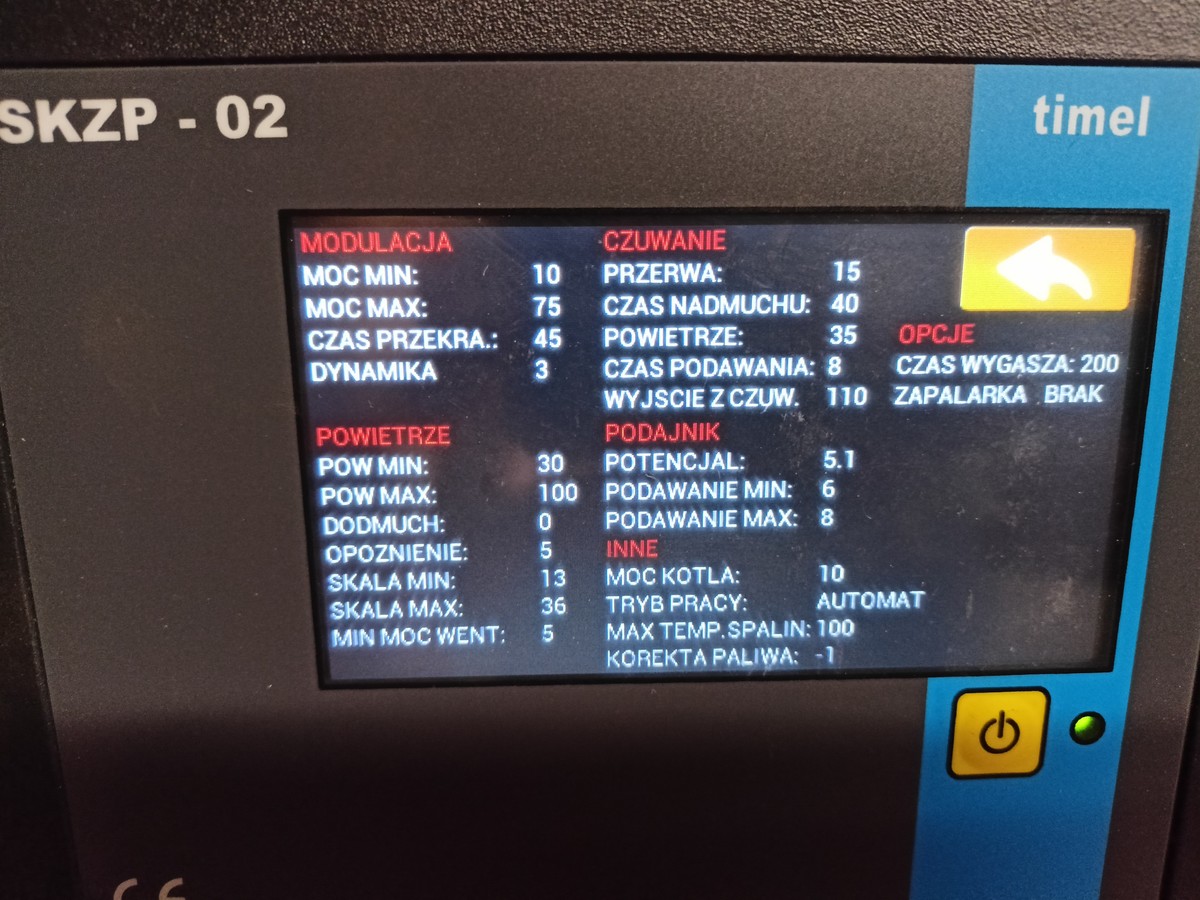 4. Witam wszystkich forumowiczów. Tak czytam tematy i nie znalazłem odpowiedzi a swoje pytanie. Mam panik Sv200 9kw i do tego chyba dostałem ruszt peletowy. Mam wrażenie jak by było za mało powietrza przy paleniu ekogroszku przy. Dmuchawa 80w. Sterownik skpz 02, kocioł 12KW. Zamówiłem 10kw a taki mi przysłali. Prz okazji wklejam moje nastawy, jak by ktoś mógł zerknąć i skorygować bym był wdzięczny.
