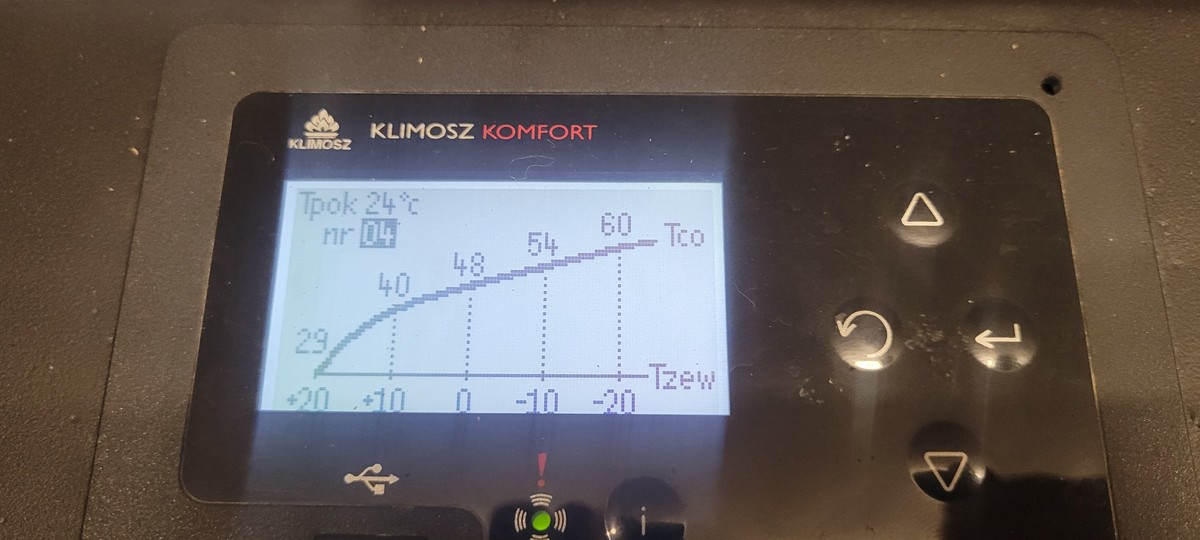 Cześć, wydaje mi się, że mam problem z CWU. Podejrzewam, bo nie wiem jak to potwierdzić na 100%. Może najpierw opiszę jak mam wykonaną instalację: - kocioł Klimosz Le Pellet 20 - obieg CO z zaworem 4D z siłownikiem oraz czujnikiem temperatury zewnętrznej - obieg CWU - pompa na powrocie (zrobione obejście) - termostat pokojowy Termostat pokojowy daje sygnał do obniżenia temperatury na CO. w Tym momencie o 15%, wcześniej miałem 20%, w ramach testu zmieniłem. Załączam zdjęcie krzywej. Załączam także zdjęcia instalacji. Bojler Drazice stoi w piwnicy. Kocioł stoi w kotłowni. Bojler z kotłem łączy około 12m rur. Być może jest to bardzo istotne. Nastawy kotła mam następujące - temperatura zadana 69* - histereza 10* - temeperatura powrotu min 45* z tym, że zwykle jest około 15* mniejsza niż temperatura kotła - temperatura cwu 49* histereza 7* Opis problemu: W zeszłym roku nie było pompy na powrocie. Wydaje mi się, że po jej założeniu zaczął się problem z szybkim wychładzaniem CWU. Niestety nie jestem w stanie stwierdzić czy w zeszłym roku wyglądało to podobnie. Pomimo tego, że pompa cwu nie jest włączona, jest ona strasznie gorąca tak samo jak zawory przed i za nią. Wydaje mi się, że przez to grzanie grawitacyjne bojler wpycha zimną wodę z wężownicy do kotła co powoduje jego szybsze wystudzanie. Dzisiaj zauważyłem, że bez odbioru ciepłej wody temperatura bojlera spadła z 42,1 na 41,3 w 2 godziny. Wydaje mi się to dosyć sporo. Może to normalne? Kontaktowałem się z klimoszem i ich główny serwisant stwierdził, że może to być wina dołożonego zaworu na powrocie. Poradził żeby założyć za pompą cwu zawór zwrotny sprężynowy zamiast klapowego który jest teraz. Generalnie z kotła jestem zadowolony. Gdyby nie obecne ceny pelletu na pewno bym nie drążył tematu. Kocioł pracuje w 160m bardzo słabo ocieplonym domu. Tak, jest dużo za duży. w tym momecie skręcony do około 12kw. Dodam, że przy tych temperaturach kocioł rozpala się 10 razy, podejrzewam, że to wina tego, że jest za duży. Parę rzeczy o który zapomniałem. - termometr analogowy za pompą CO pokazuje wartości co najmniej 10 stopni mniejsze niż czujnik w kotle. Może się zepsuł, natomiast sprawdziłem stary i pokazuje takie same wartości. W ramach testu włożyłem go w miejsce czujnika temperatury kotła i też pokazywał całkowicie inną temperaturę. Sprawdzając temperaturę grzejników pirometrem różnica między tym wynikiem a tym co pokazuje kocioł to około 1* więc chyba wina termometru.