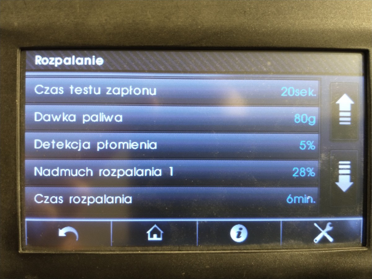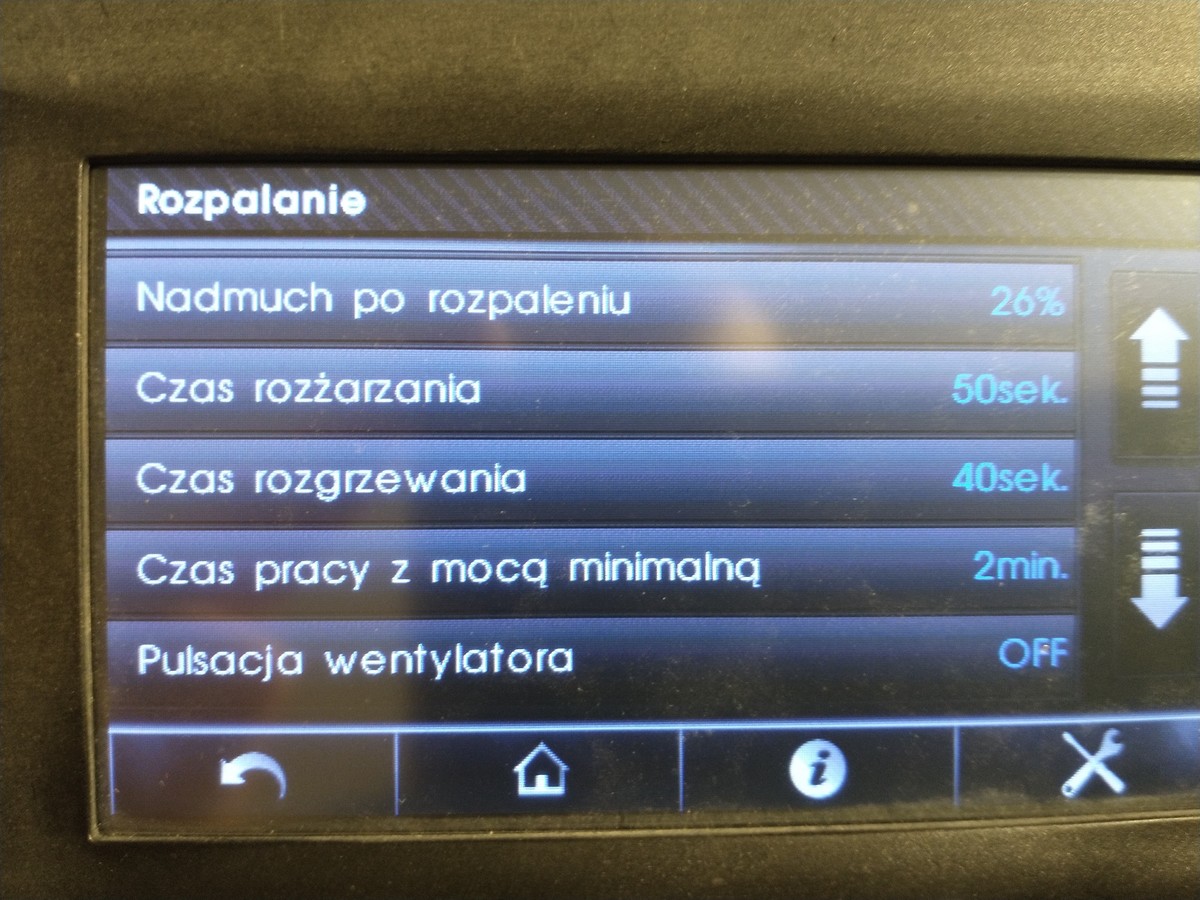 Panowie, możecie rzucić okiem na moje ustawienia w menu "Rozpalanie" i napisać, czy wszystko jest ok? Wydaje mi się, że przy ostatnim serwisie zostało coś zmienione, bo jest problem z rozpalaniem. Palnik potrzebuje dwóch podejść, żeby kocioł zaczął pracować. Przy czym pierwsza próba rozpalania jest dziwna, bo już po około minucie palnik przechodzi do trybu "Praca". Oczywiście nie ma płomienia, więc następuje czyszczenie, podanie pelletu i druga próba rozpalania. Ta druga próba jest już skuteczna. -