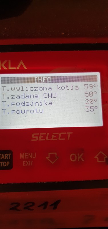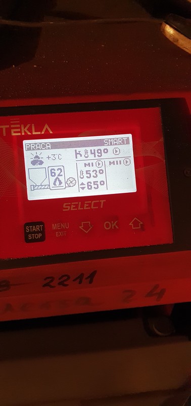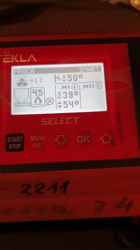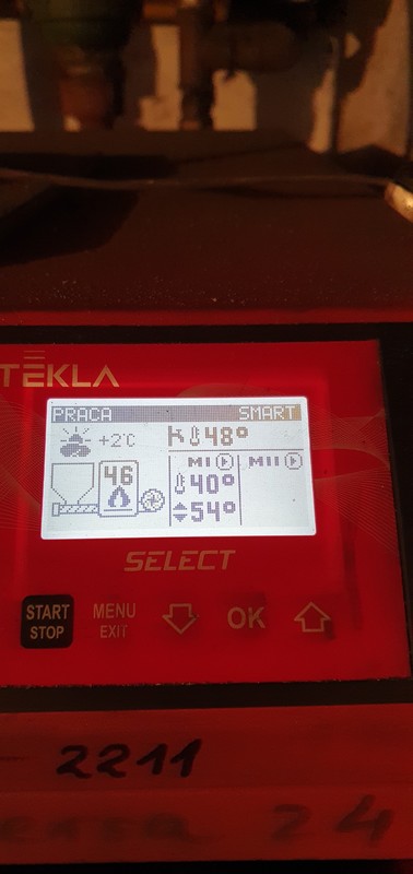 Czujnik temp jest natomiast nie ma ustawionej "pogodówki" bo czujnik jest od wschodu i do południa go słońce grzeje . "Masz inne urządzenie ze stykiem zwiernym Salus, Euroster?" nie mam pojęcia .Mąż jest 12 h poza zasięgiem telefonu , pracuje za granicą. Mamy zawór 4 drożny . Wyłączę priorytet CWU i zmienię histerezę. Pali dużo, mamy go o 2017 roku. W mroźne dni bierze dziennie do 40 kg, przeciętnie zimą powyżej 30 kg. Spalanie roczne 7 ton. Od początku ciężko go było wyregulować 😞 Zmienię też na zaproponowane przez Pana ustawienia. Temperatura kotła tez jest dość niska, zwyczajowo kojarzę powyżej 50. -
