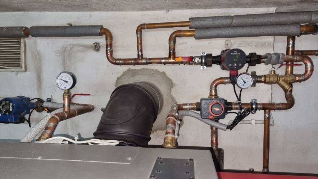 Instalacja CO z zaworem 4D + czujnik pogodowy + zawory termostatyczne na kaloryferach + bojler CWU 300 litrów + solary. Całą instalacja CO w miedzi.