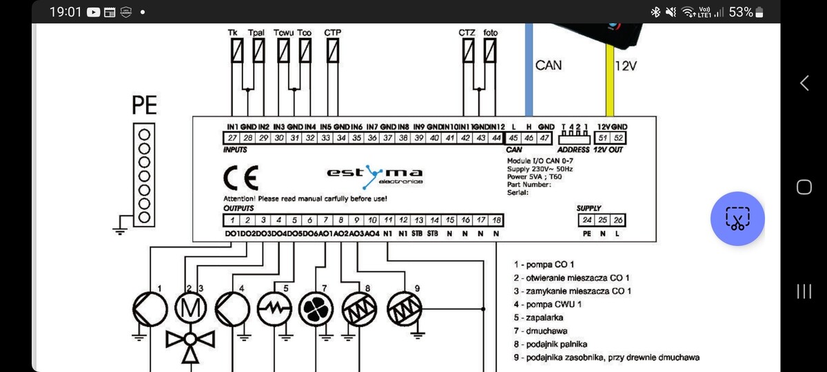 Odgrzewam kotleta, ale też mam problem z czujnikiem temperatury powrotu. Sterownik Slim + moduł 5. Po podłączaniu według schematu  do modułu 5 jest komunikat "rozwarcie na czujniku t. Pow." . Czujnik sprawny, zamieniany i gdzie indziej działa. Czy ta informacja jest przez kogoś sprawdzona, żeby podłączyć pod wejścia 39-40? 40 pin zarówno na głównym module jak i na module 5 to +5V. Coś mi to nie gra, nie chciałbym nic zepsuć.
