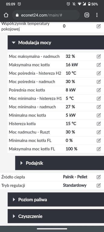 Hehe ja właśnie  tak katuję  leciwego śmieciucha na takich ustawieniach.Palnik pracuje między 5KW-7KW/24h utrzymując temperaturę na kotle 49-51 stopni .Przeważnie jest to 5KW i 50 stopni.Obecne ustawienia: