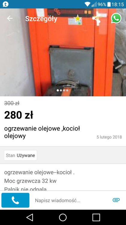 A propos wymiany kotła, to takie coś wpadło mi w oczy. Może nie jakieś cudo, ale pod buforek? I za te pieniądze? e81fff755c98ab1f667c279d2f765b7a.jpg