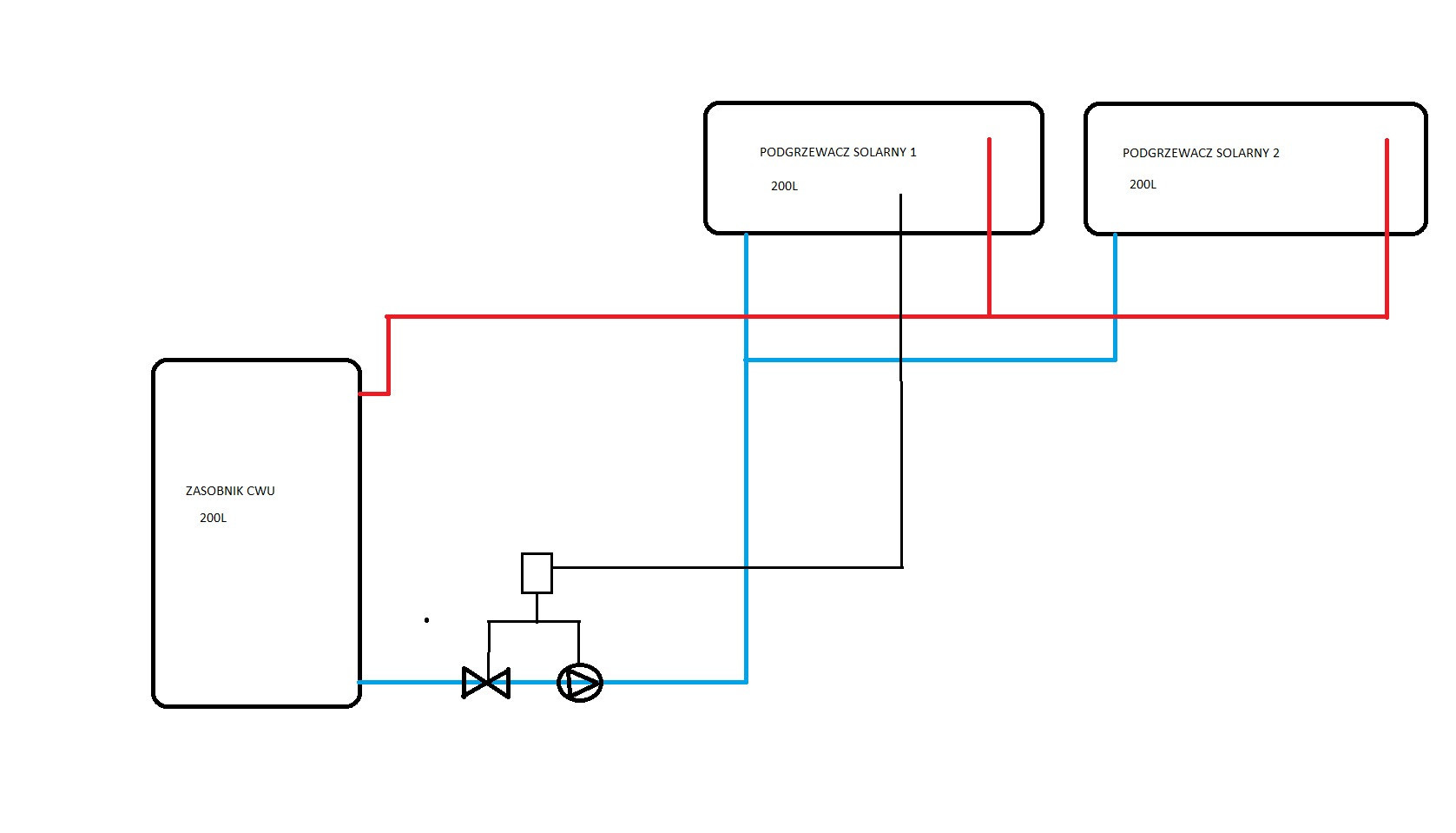 Kolektor słoneczny ciśnieniowy w szeregu z bojlerem.