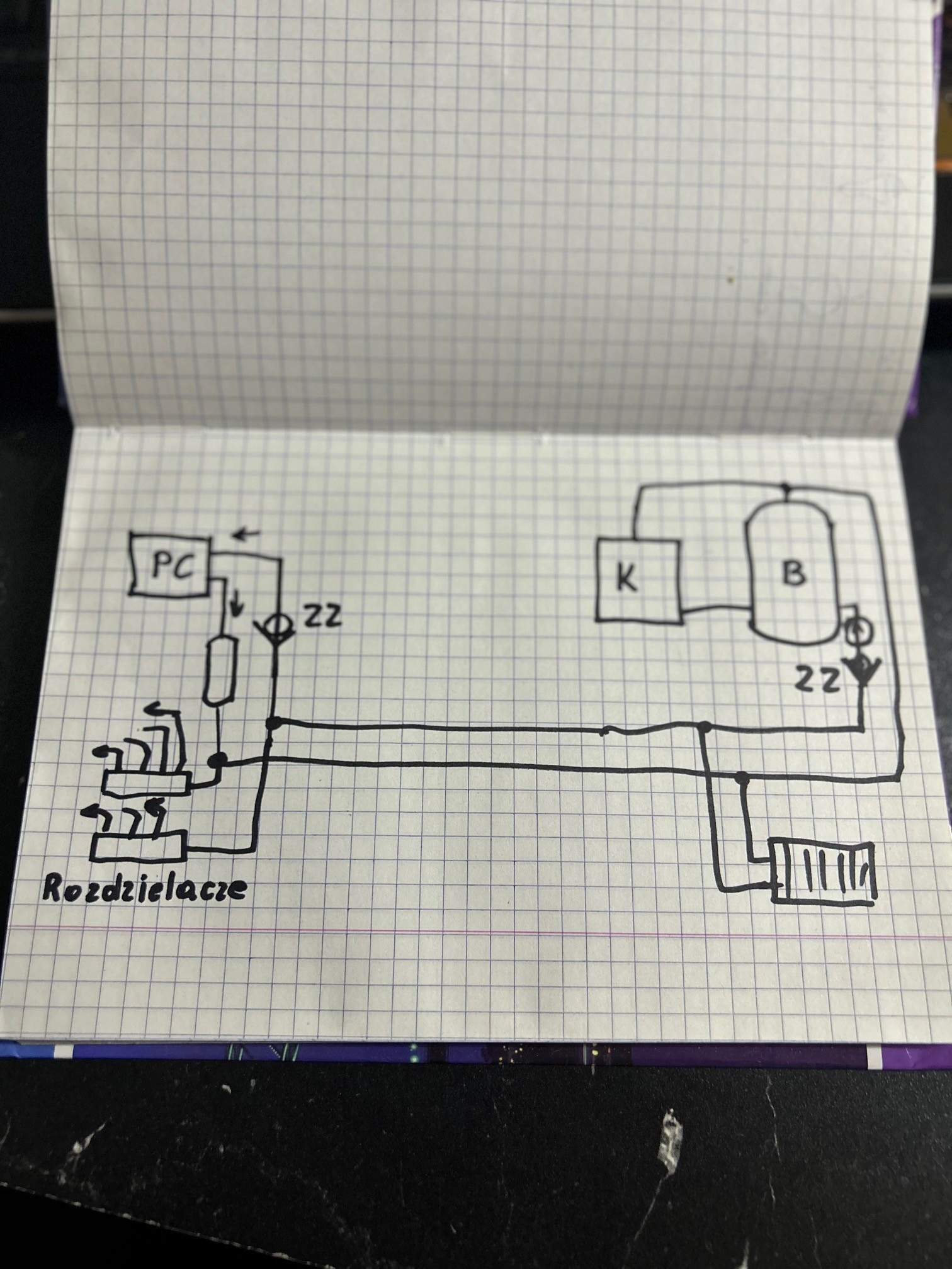 Podłączenie zasilania podłogówki + zasilanie bufora z PC oraz z pieca stałopalnego do jednego króćca w buforze