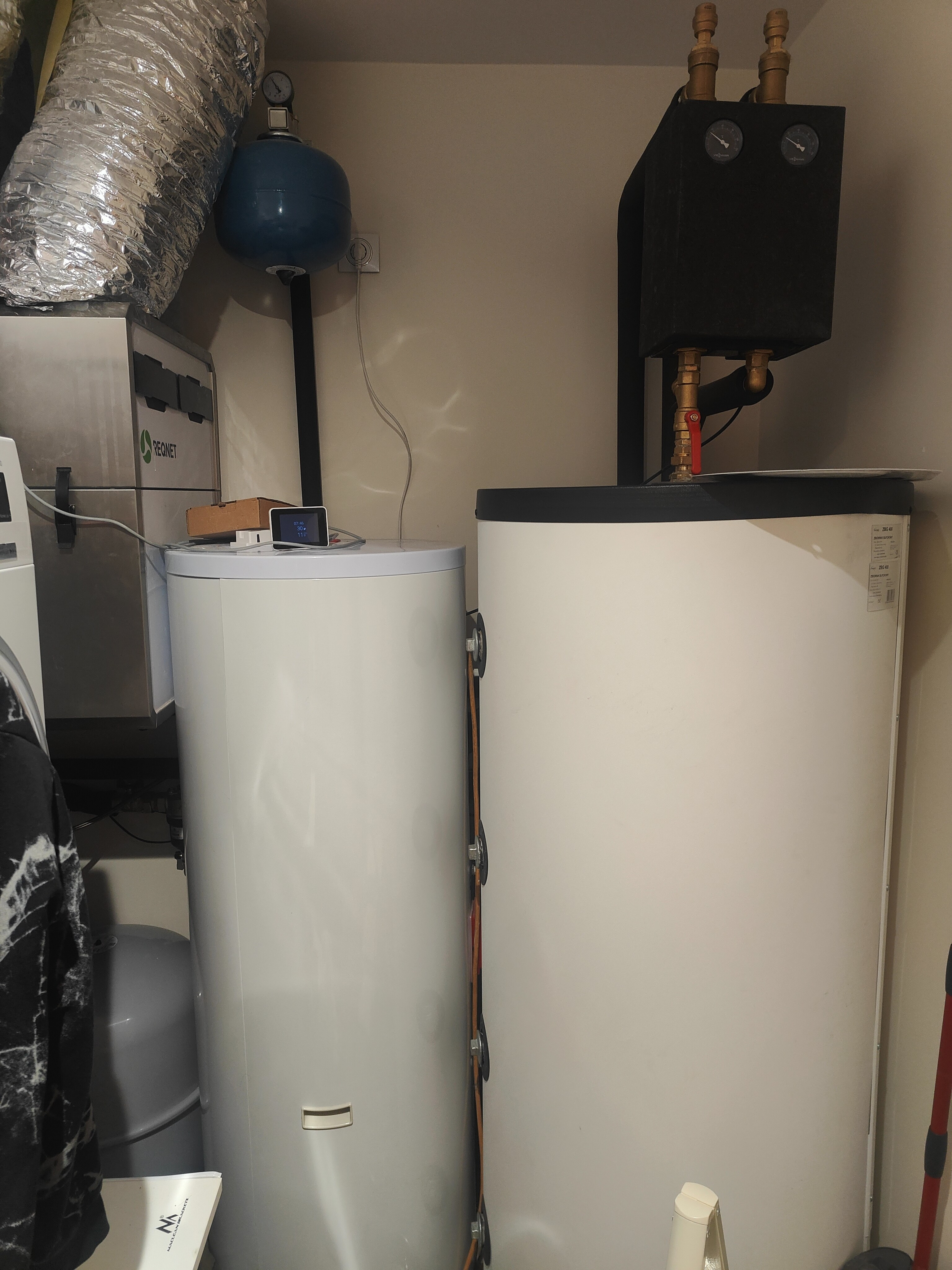 Podłączenie zasilania podłogówki + zasilanie bufora z PC oraz z pieca stałopalnego do jednego króćca w buforze